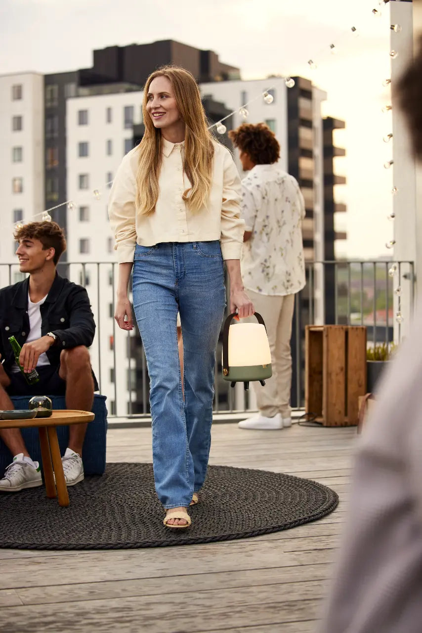 בסוללה נטענת מובנית וידית נוחה ומעוצבת, בעבודת יד. קחו אותה החוצה, שימו אותה בסלון – תוכלו להנות ממוסיקה ותאורה בכל מקום במשך שעות.